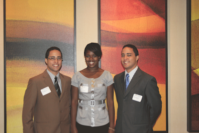 Matthew Sloan (left), Mary Cooksey (middle) and Christopher Sloan (right), representatives for California State Assembly Member Wilmer Amina Carter of the 62nd District, pose for a picture prior to the opening ceremony of the 1st California Junior Black Chamber of Commerce Conference.