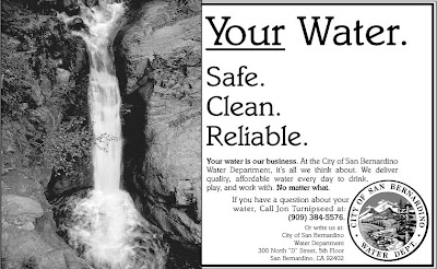 This ad was design to let customers know that the San Bernardino City Water Department’s source of water is pristine.