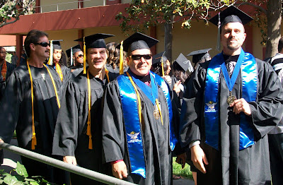 Sal Reyes and Daryl Raymond, front left to right, at their San Bernardino Valley College graduation. The two men obtained help getting their lives back on track from Path to Prosperity, a program of The Salvation Army, after overcoming methamphetamine addiction. They are now beginning work on bachelor’s degrees at California State University, San Bernardino.