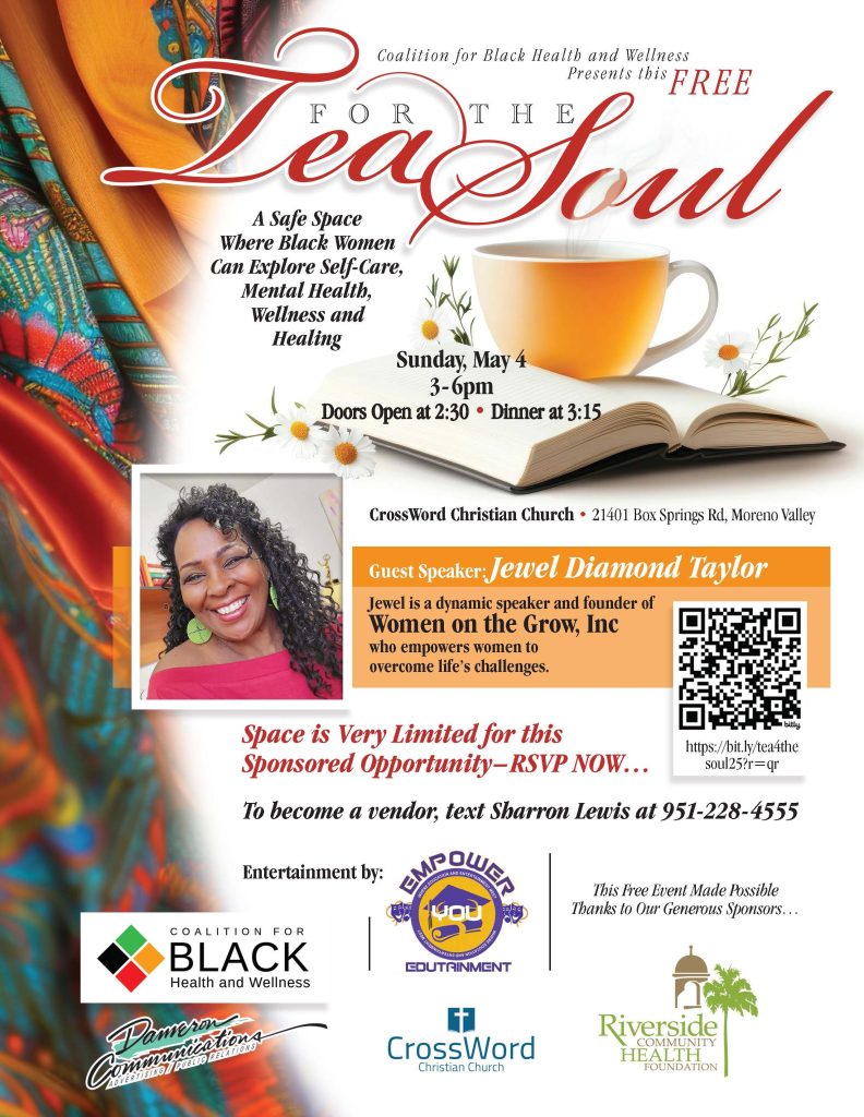 Dameron Communications Art Director Thom Salisbury designed the graphic elements for Tea for the Soul, including the logo, social media artwork, and flyer/ad