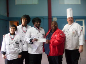Inland Empire Job Corps culinary students – Deserie Yescas, Patrick Wolfe and Chef Michael Geurds, culinary instructor at Inland Empire Job Corps deliver their $300 for…