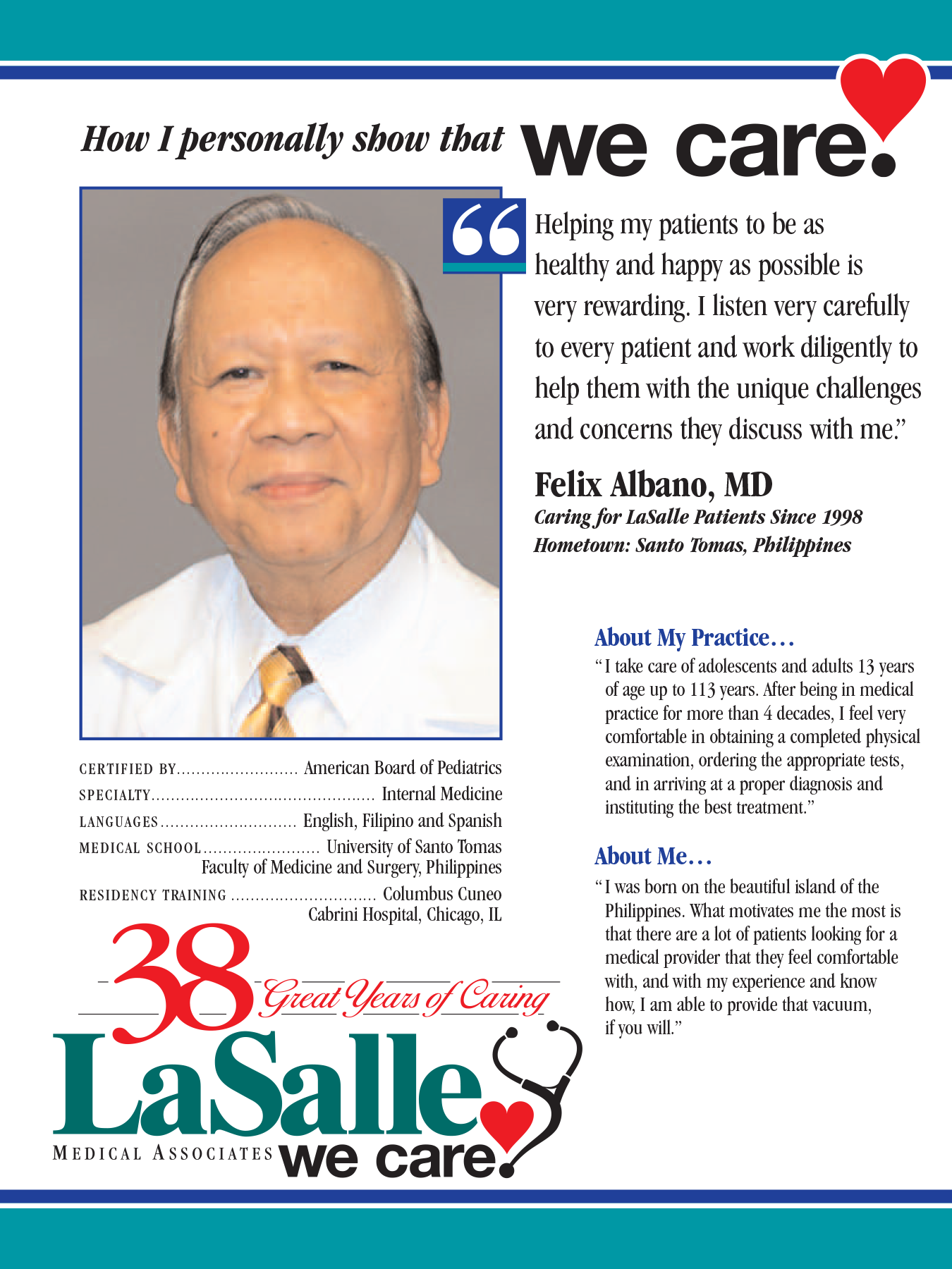 - Strategy/tactics: Partnered with LaSalle Medical Associates since 2004 to increase awareness of LaSalle clinics and enhance public perception of its healthcare services across all demographics.